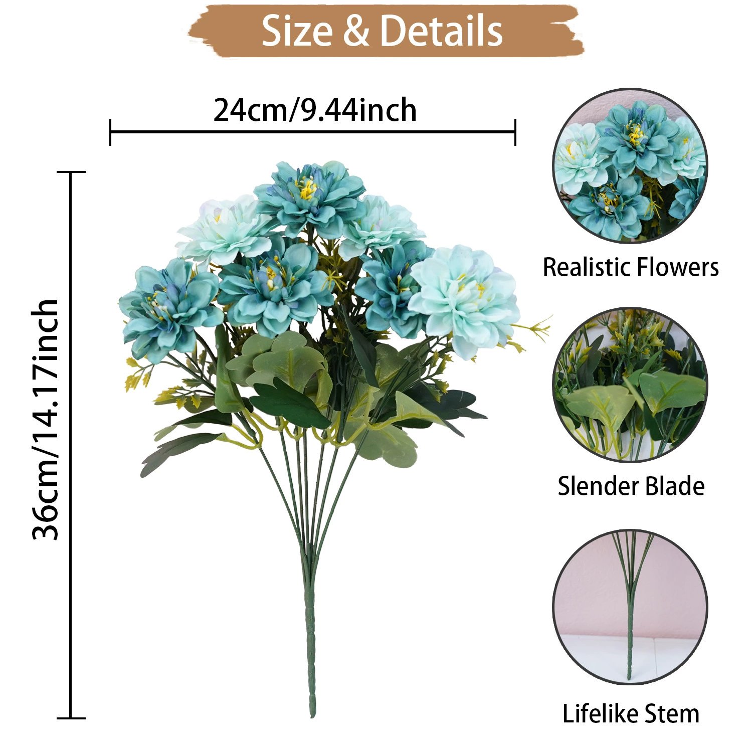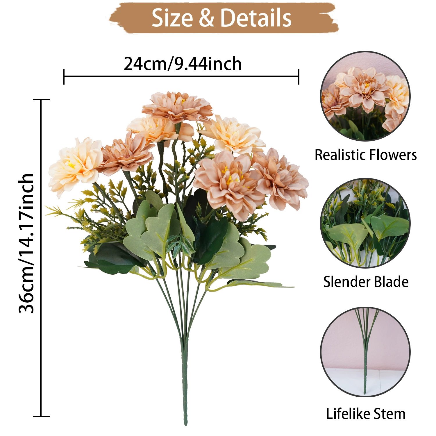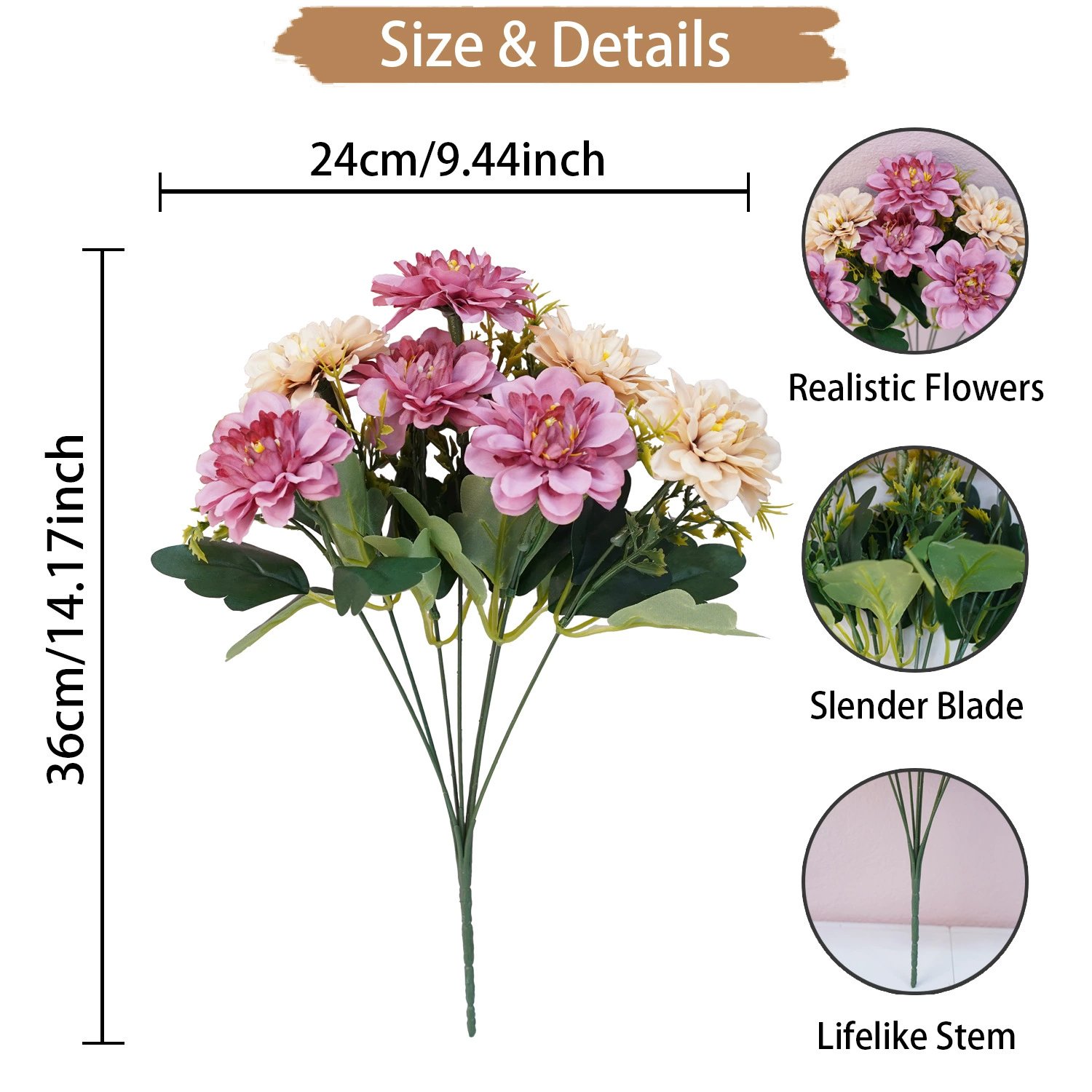 【DIY or Flower Arrangement】The silk flowers bouquet will not fade and never wither, it can remain fresh-looking and beautiful year after year. Bouquet branches can be bent or cut, which is very suitable for DIY floral arrangements decor.