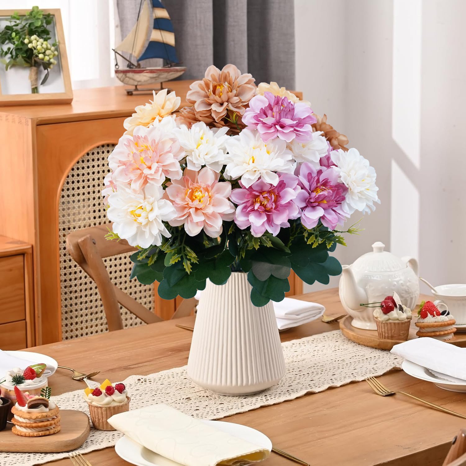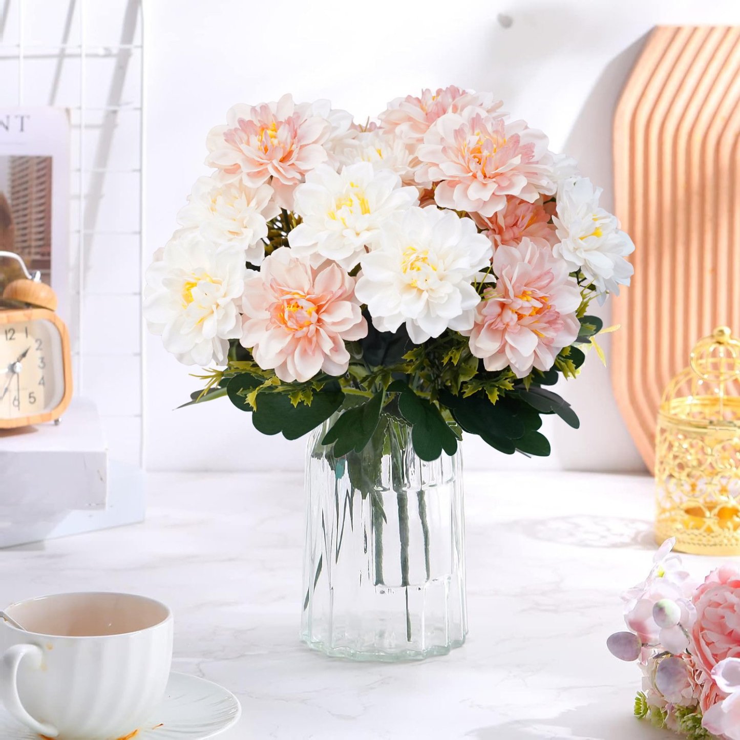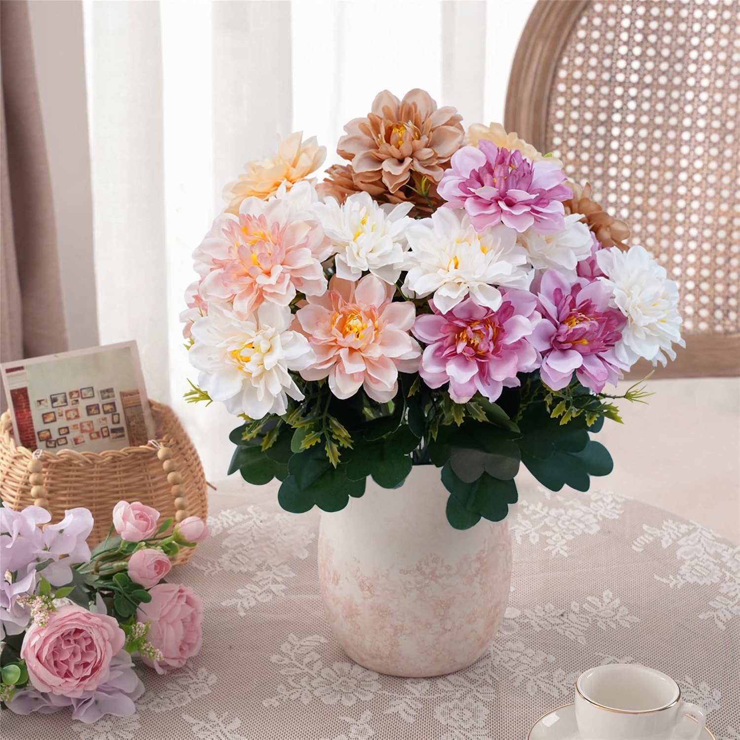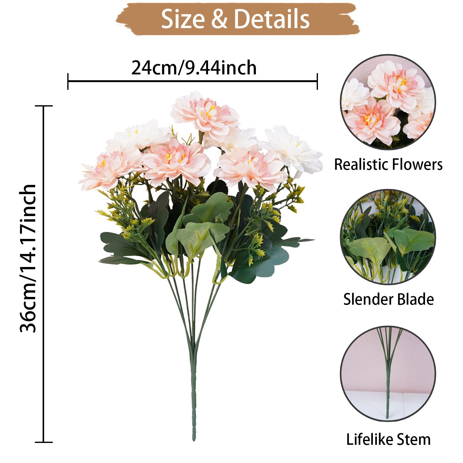 【DIY or Flower Arrangement】The silk flowers bouquet will not fade and never wither, it can remain fresh-looking and beautiful year after year. Bouquet branches can be bent or cut, which is very suitable for DIY floral arrangements decor.