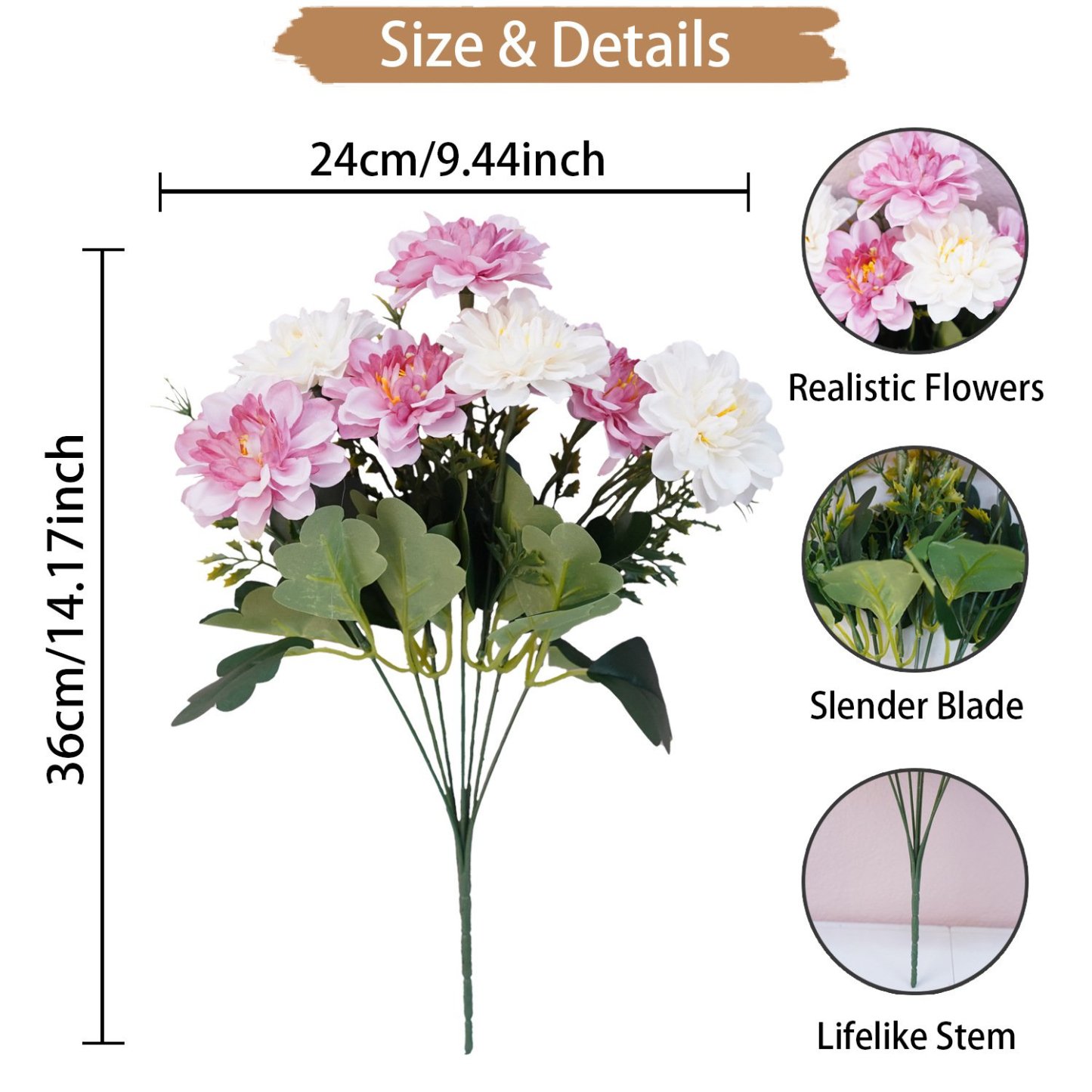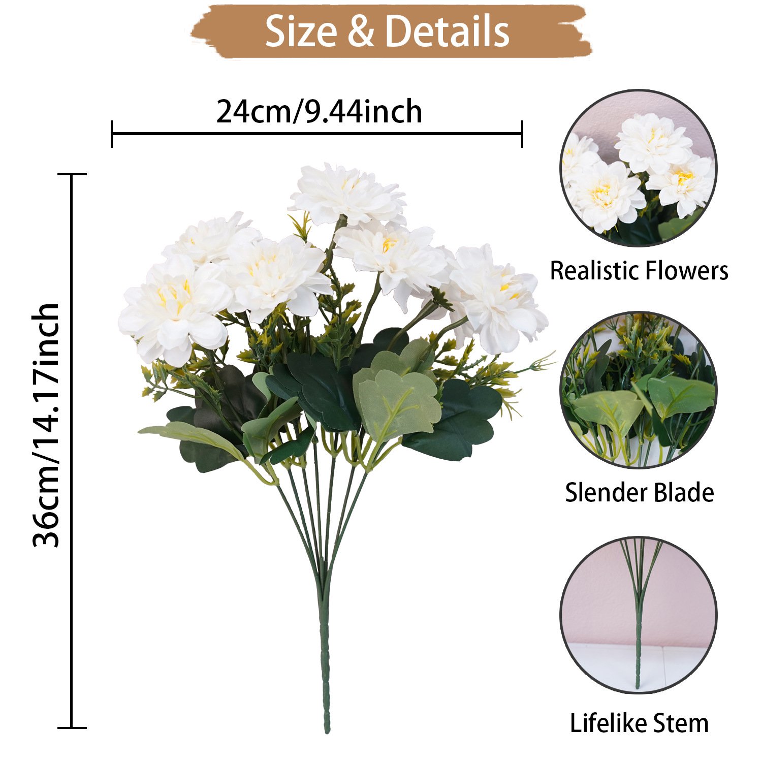 【Real Touch Material】Design with natural color, making it real-looking. You can place it on table, your guest won't believe it's fake!