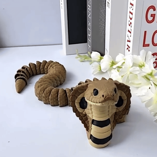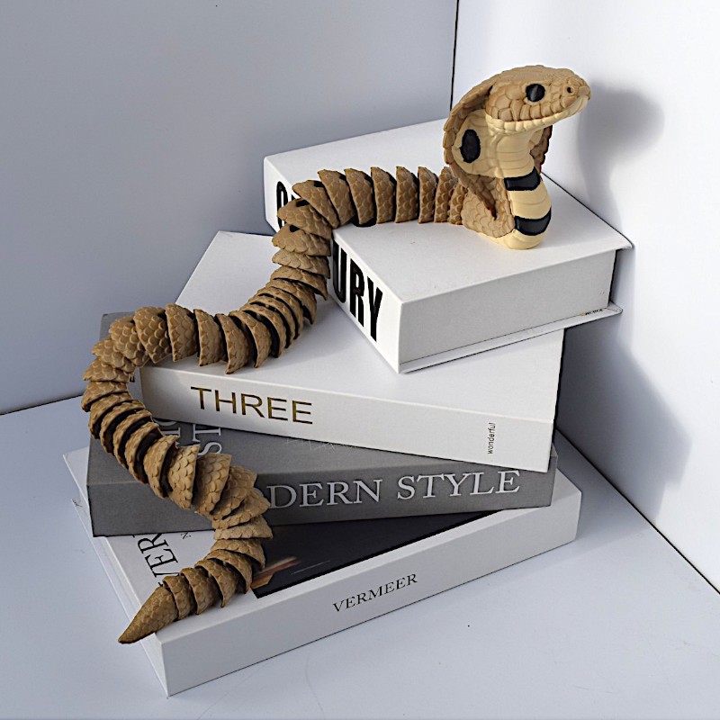 Expertly 3D printed cobra figurine with fully articulated, flexible joints.Crafted from long-lasting plastic for daily display and gentle posing.Ideal for adult collectors, desktop decor, and unique gifting.