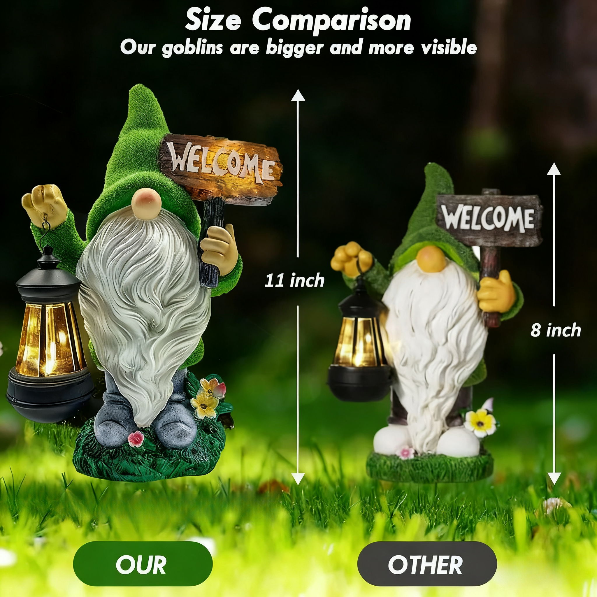 Built-in solar-powered light charges during the day and automatically lights up at night, no plug-in required. The lantern shape plus "Welcome" wording adds warmth while providing light, making guests feel welcomed at first glance.