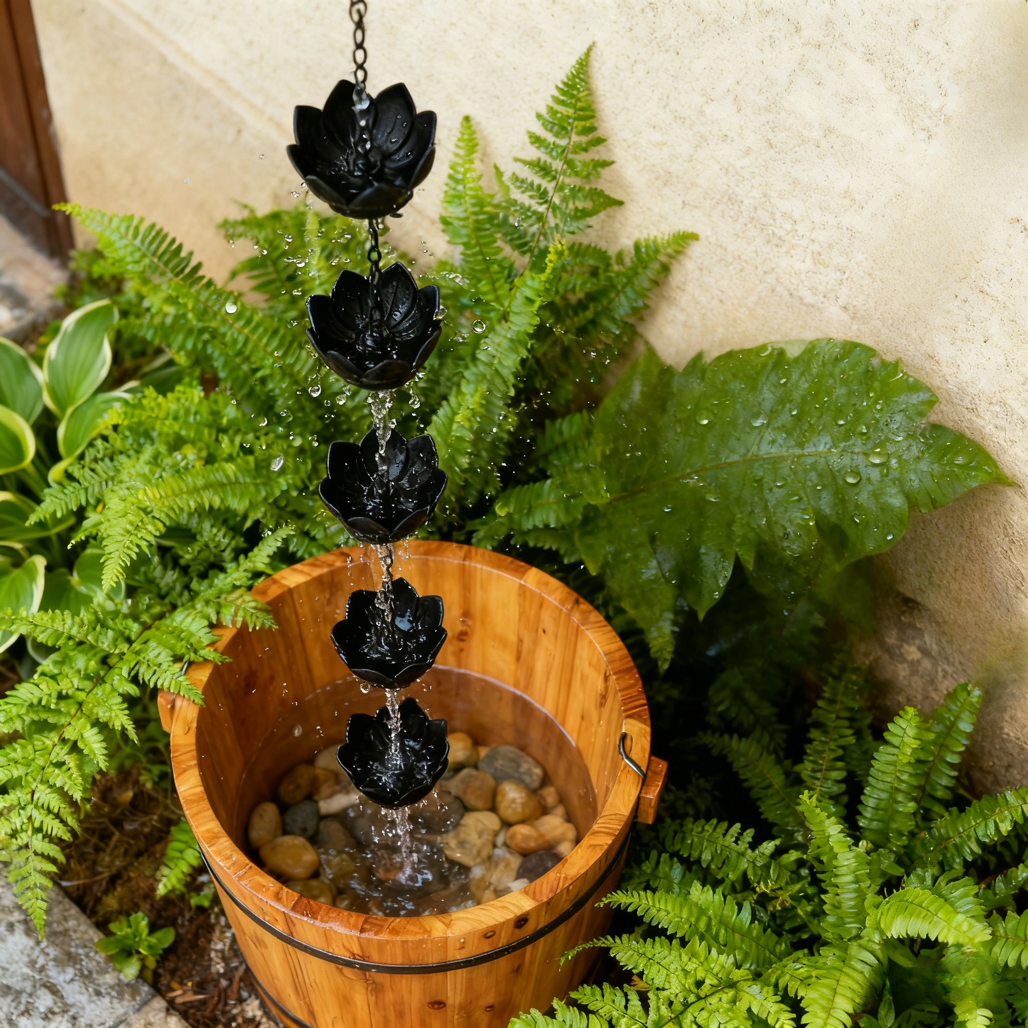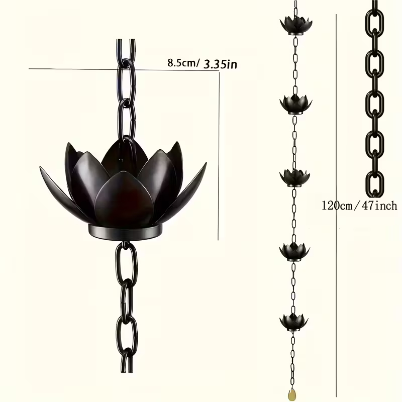 Its lotus-shaped exterior is elegant and sophisticated, and each link is thickened (1.2mm+) for a premium look, instantly upgrading your home’s curb appeal compared to boring plastic downspouts.