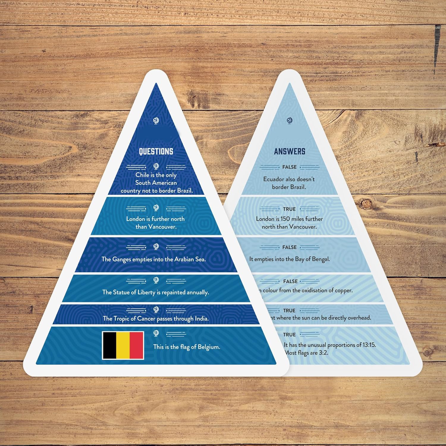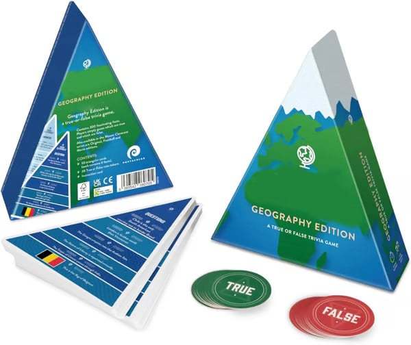 ✅ 400 Carefully Selected Questions - Covering easy and challenging topics, suitable for all ages. Contains 50 big triangular cards AND thirty discs to bet whether the answer is TRUE or FALSE (lose a token if you get it wrong!).